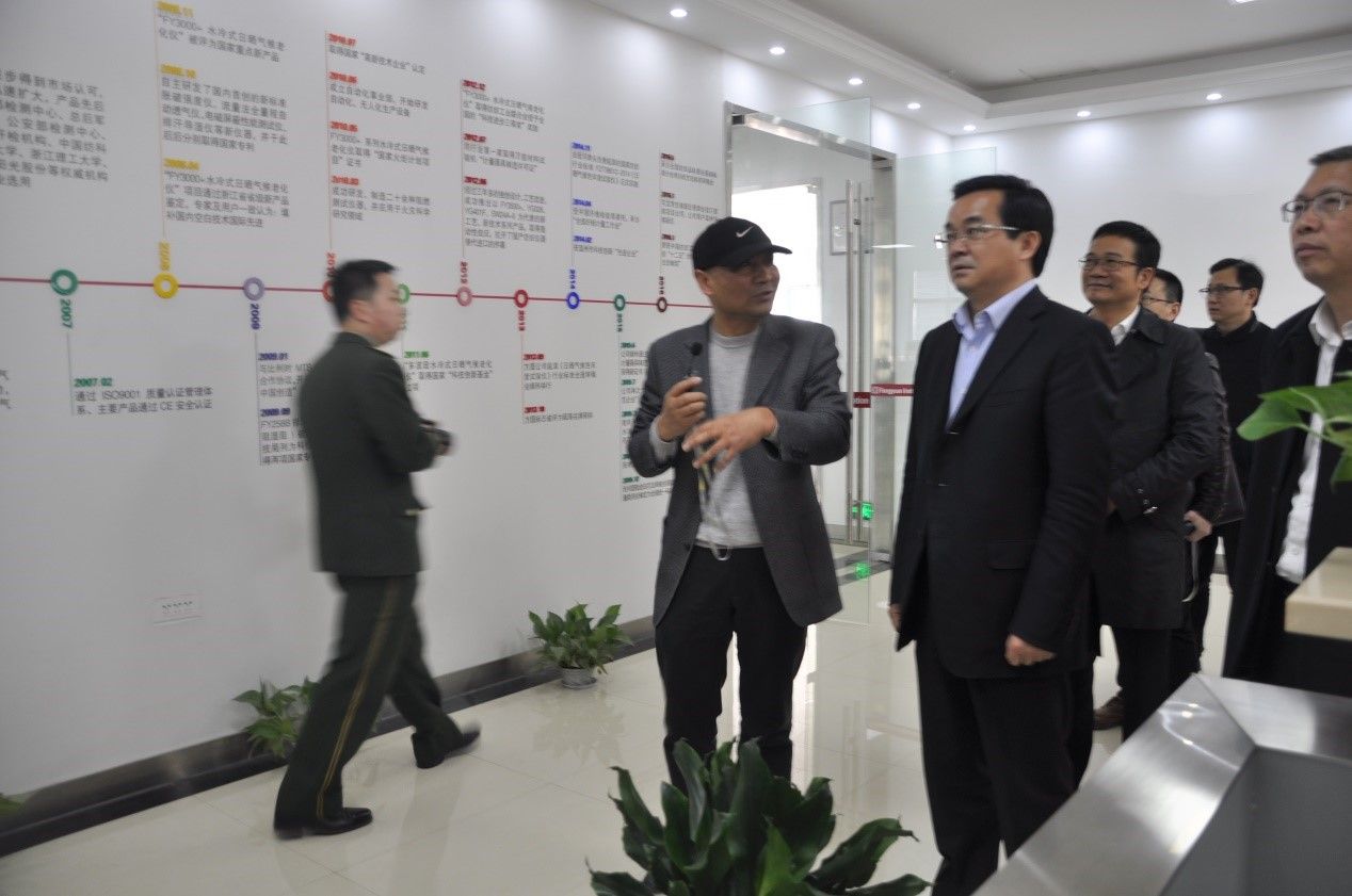 2018年39日,副省長高興夫赴龍灣調(diào)研小微企業(yè)園區(qū)建設(shè)運(yùn)營管理工作時(shí),實(shí)地走訪我公司。副市長陳建明,區(qū)委副書記、區(qū)長周一富隨同調(diào)研。副省長高興夫等領(lǐng)導(dǎo)在我公司董事長、總工程師李文霖的陪同下,參觀了我公司的機(jī)加工車間、組裝調(diào)試車間、榮譽(yù)展示廳、樣品展示廳??疾熘?,李文霖董事長向考察組領(lǐng)導(dǎo)詳細(xì)匯報(bào)溫州方圓儀器有限公司發(fā)展歷史、企業(yè)規(guī)模、管理經(jīng)驗(yàn)、技術(shù)創(chuàng)新、發(fā)展規(guī)劃等。調(diào)研組領(lǐng)導(dǎo)對(duì)我公司取得的成績給予充分肯定,并囑咐我們要堅(jiān)持走自主創(chuàng)新的道路,加快新產(chǎn)品開發(fā)力度,提高市場(chǎng)影響力。